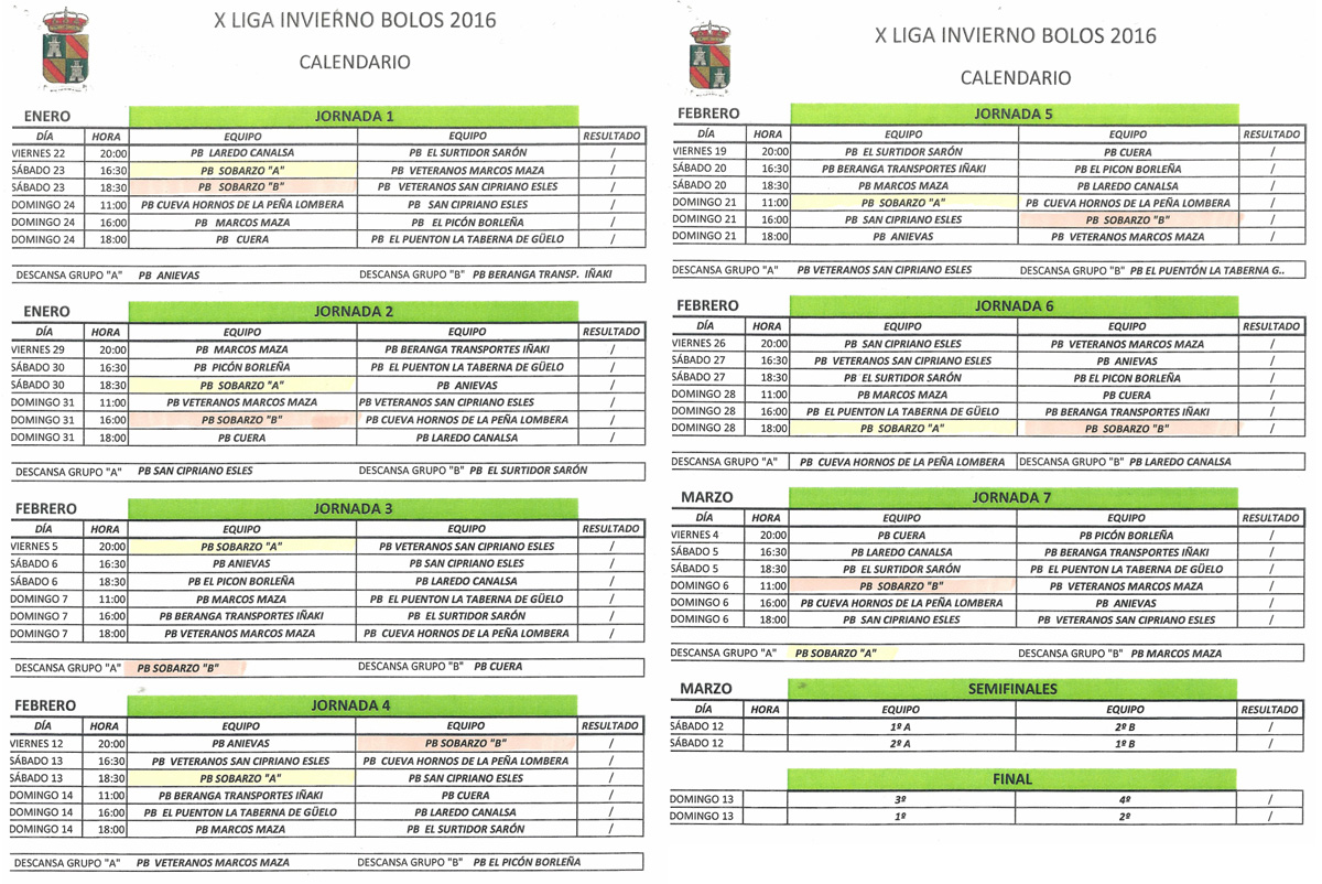 X LIGA DE INVIERNO DE SARÓN 2016: