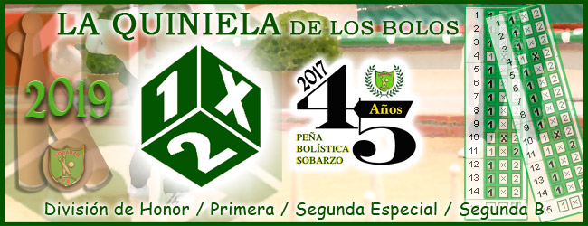 Este año la quiniela de los bolos se desarrollara durante toda la temporada con un máximo de partidos de 10, escogidos entre los partidos que se disputan en DIVISION DE HONOR, LIGA DE PRIMERA CATEGORIA y el equipo de Segunda Sobarzo-Saron.