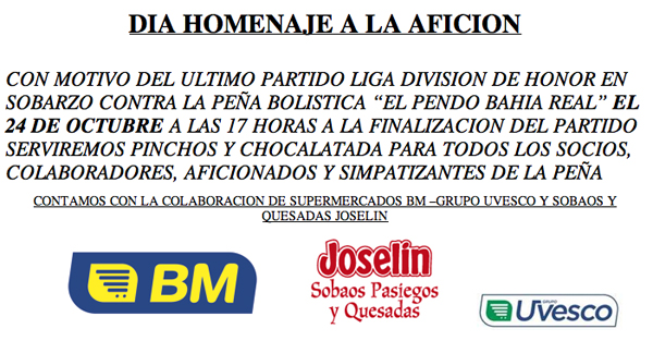 DÍA DE HOMENAJE A LA AFICIÓN - PARTIDO SOBARZO - EL PENDO - 2020 10 24:
