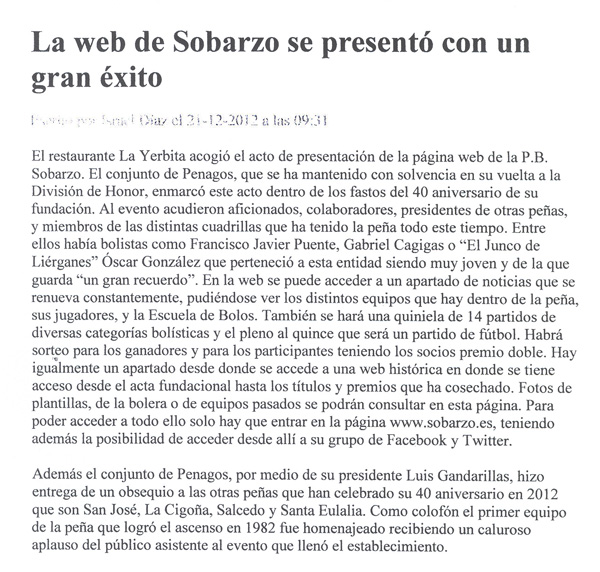 www.pbsobarzo.comNoticias aparecidas en la Prensa y Periódicos.